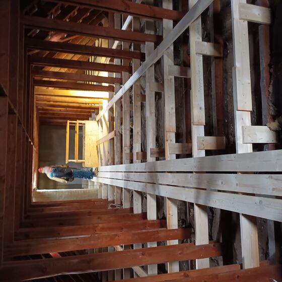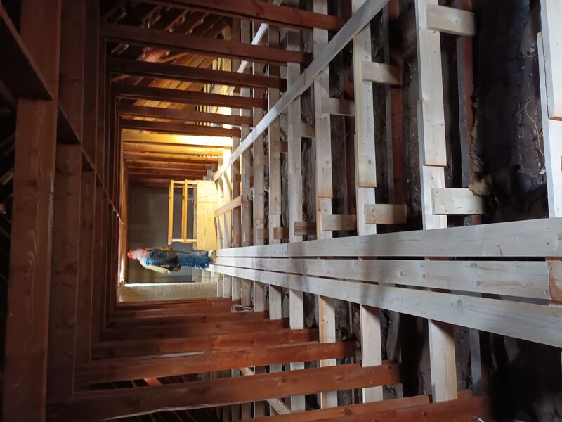 Bisher war der Untergrund des Dachbodens nicht richtig isoliert, sodass viel Wärme ungehindert nach draußen gelangen konnte. Das trieb die Energiekosten in die Höhe. Viel Arbeit gab es bei der Vorbereitung der Deckendämmung. Es wurden Schutt herausgeschafft, Laufplanken eingezogen und ein Schutzkasten um den Treppenabgang gebaut. Angeregt wurde das Sanierungsprojekt durch den Förderverein unserer Kirchengemeinde.