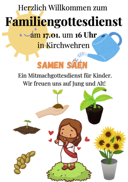 Am 17.01.2026 fand der sechste Familiengottesdienst mit Meike Vogt statt. Gemeinsam haben wir Kresse gepflanzt, gesungen und die Geschichte vom Sämann gehört. Ein guter Start in das neue Jahr!